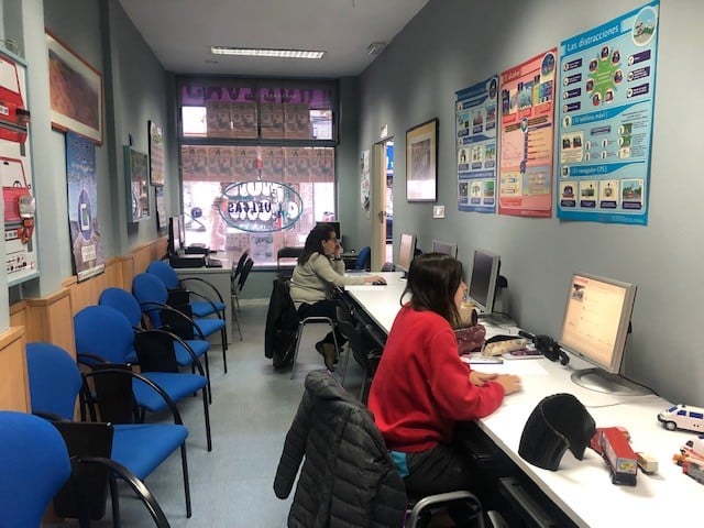 El Aula de teórica está adaptada para que puedes recibir las clases presenciales que necesites, siempre respetando el aforo, y la distancia de seguridad. Por eso has de solicitar cita previa para acudir.